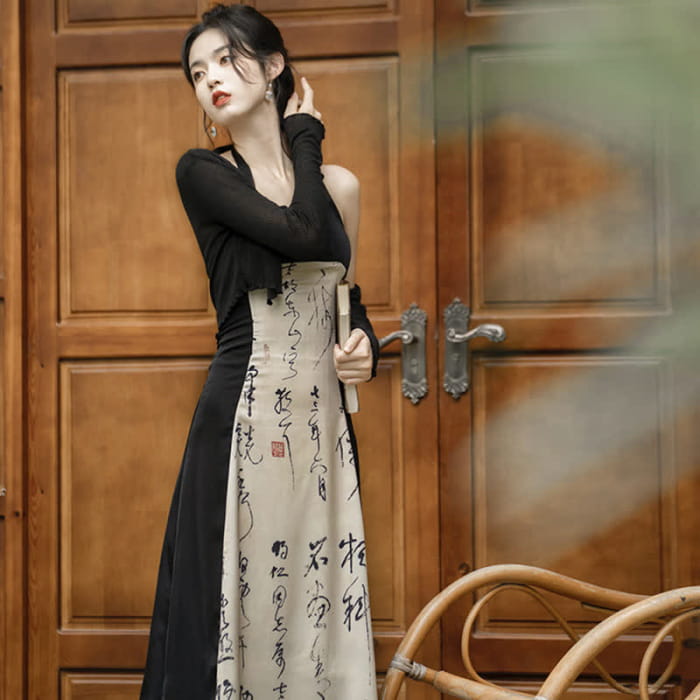 Step out in elegant style with our Vintage Character Print Halter Lace Up Dress Cardigan Set. This unique set features a beautiful halter dress with vintage character print and a matching lace up cardigan. Perfect for adding a touch of sophistication to any occasion.