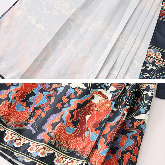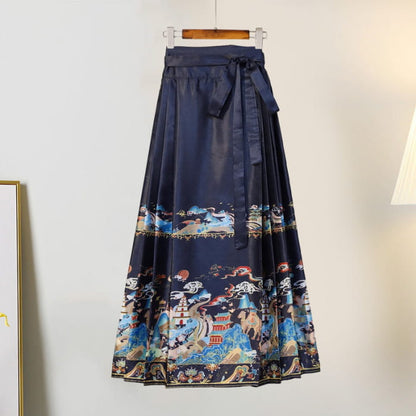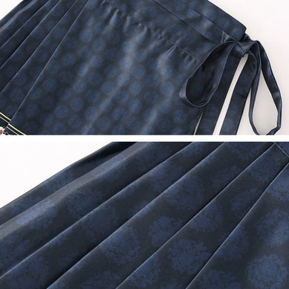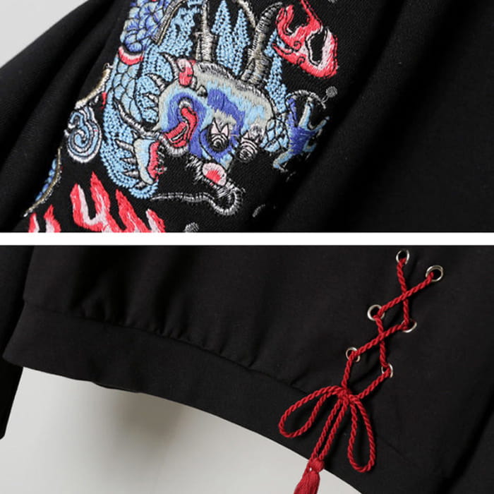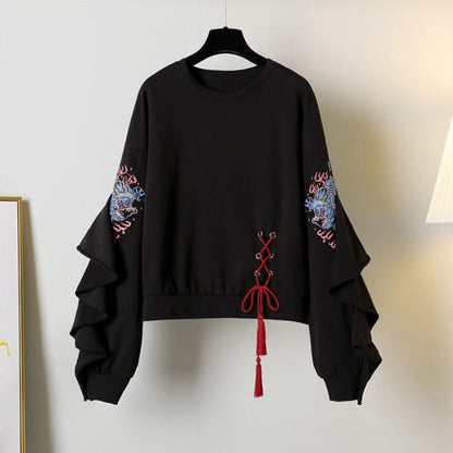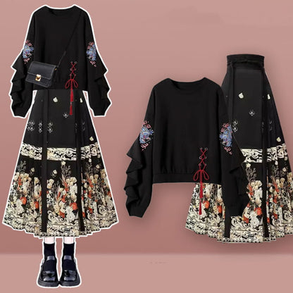 Vintage Embroideried Lace Up Sweatshirt Pleated Skirt