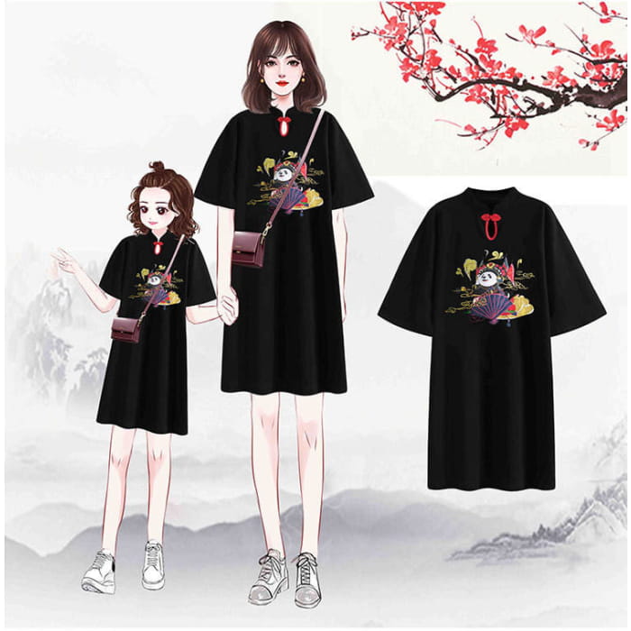 Vintage Panda Cheongsam Dress Family Matching T-Shirt