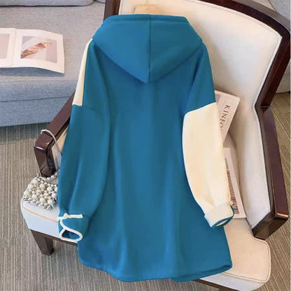 Vintage Persimmon Plush Hooded Sweatshirt Dress