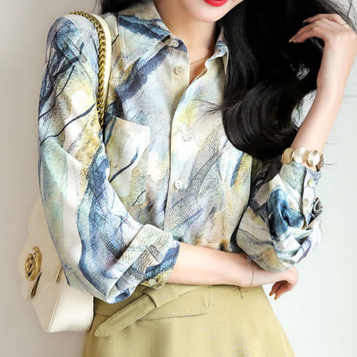 Elevate your wardrobe with our elegant Vintage Printing Pocket Lapel Shirt. This timeless design features a unique vintage print and a functional pocket, perfect for carrying small essentials. Made with high-quality materials, it's both stylish and practical for any occasion.