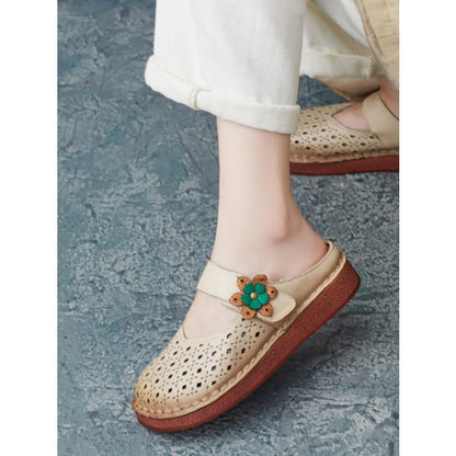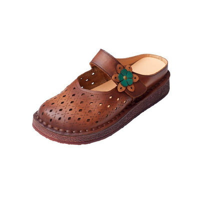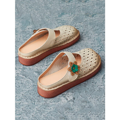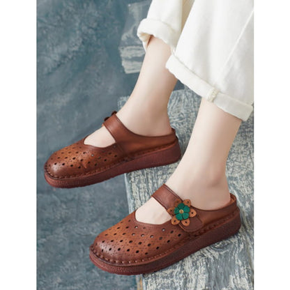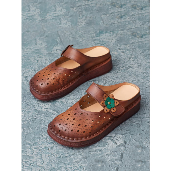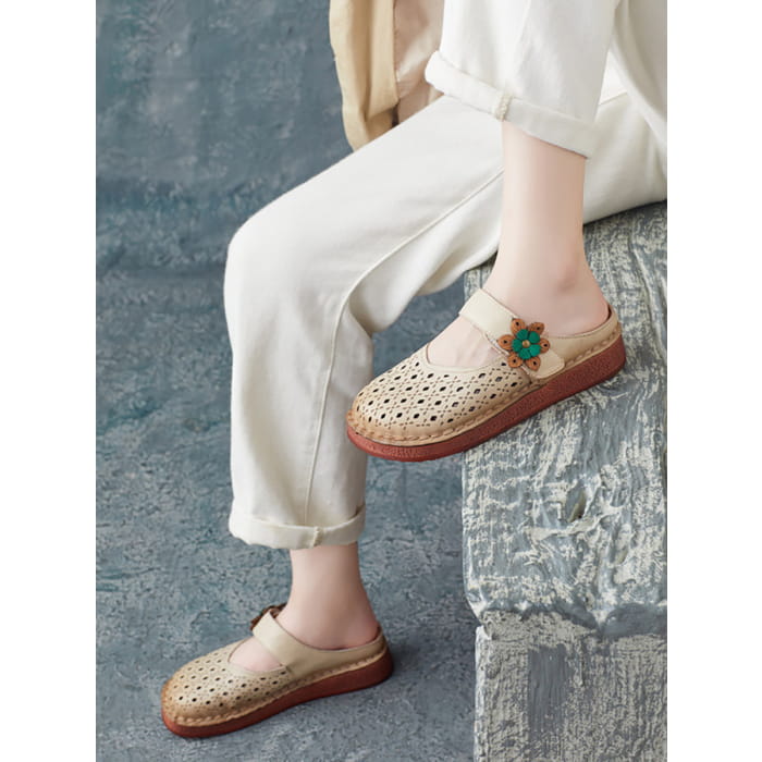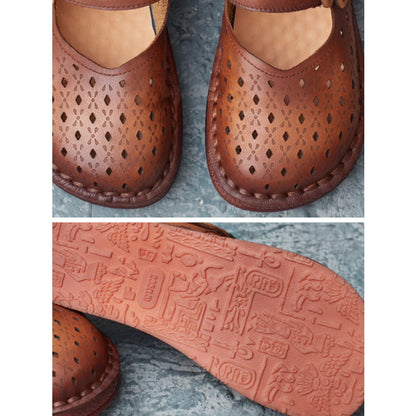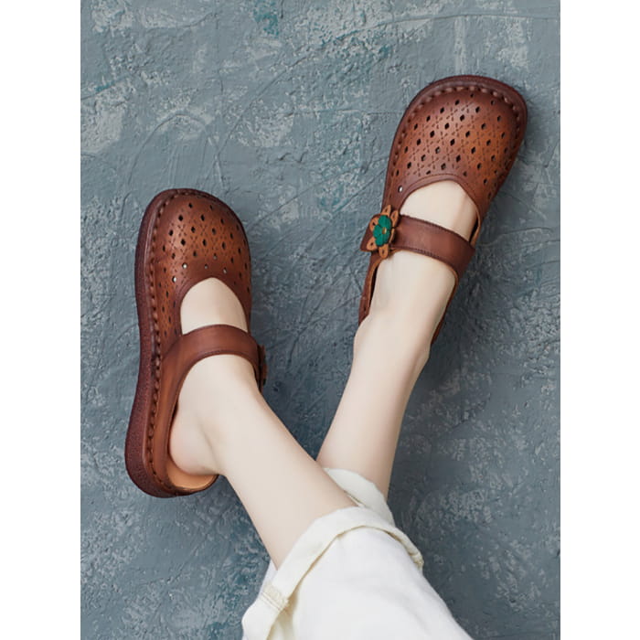Women Summer Retro Leather Cutout Shoes BN1031