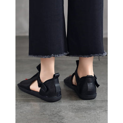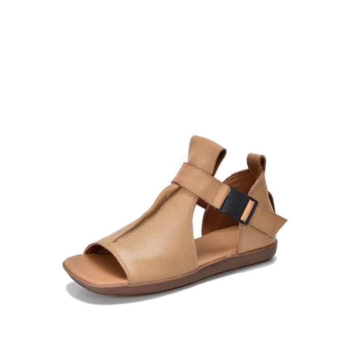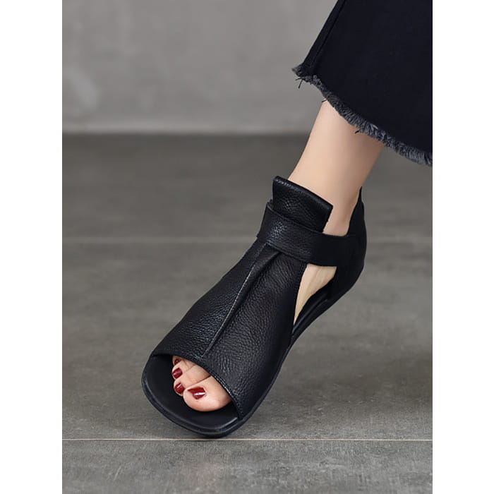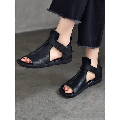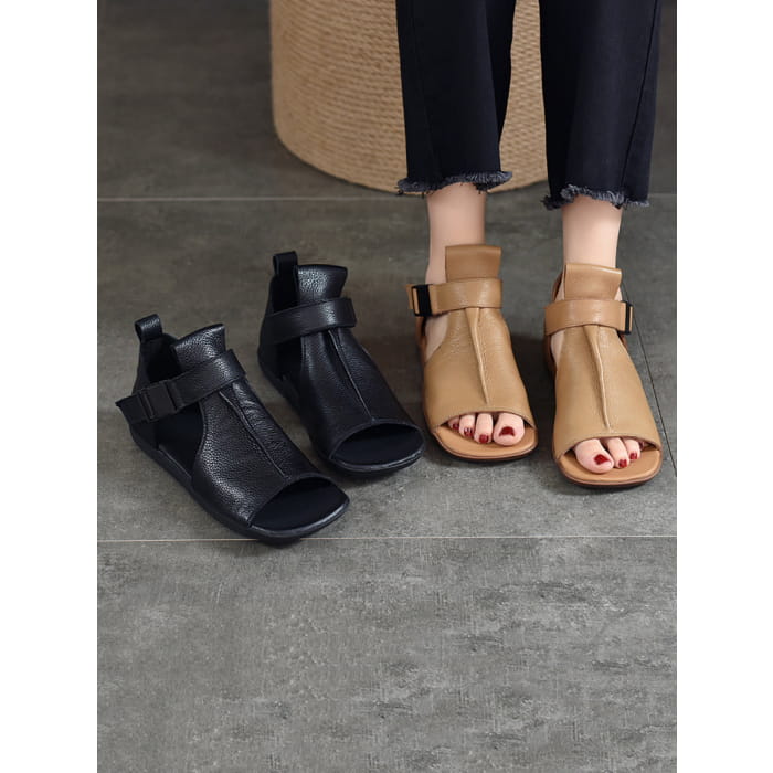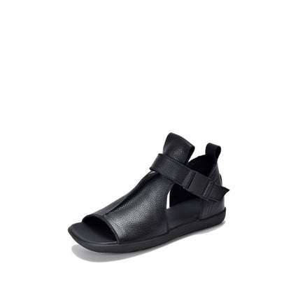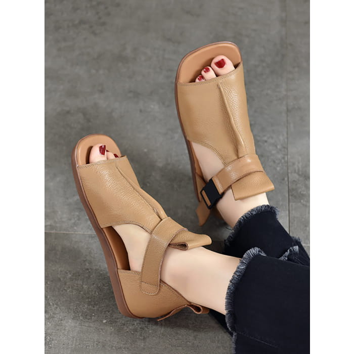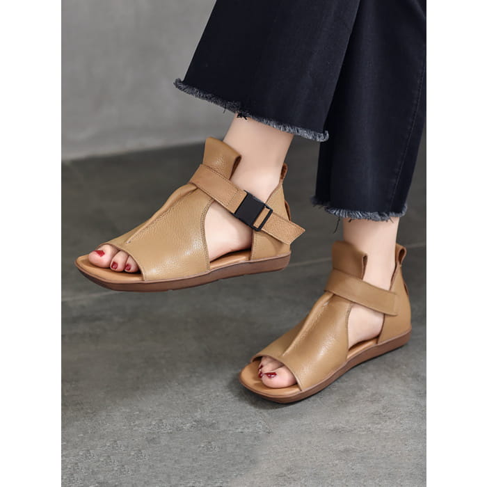 Women Summer Solid Leather Open-toe Flat Shoes BN1011