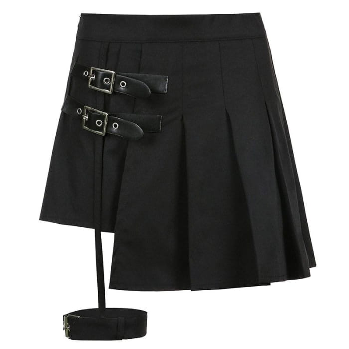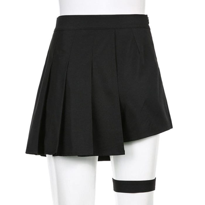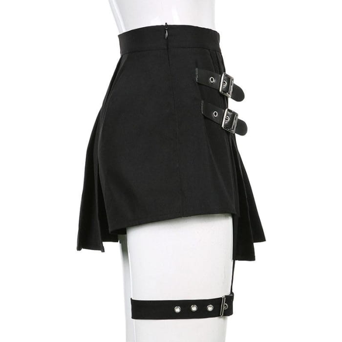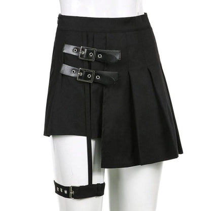 Y2K Buckle Leg Ring Mini Pleated Skirt