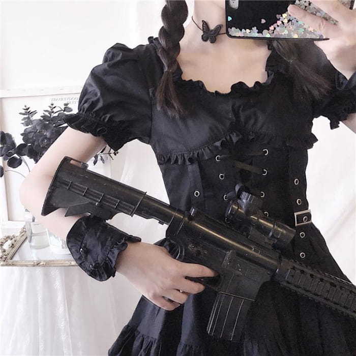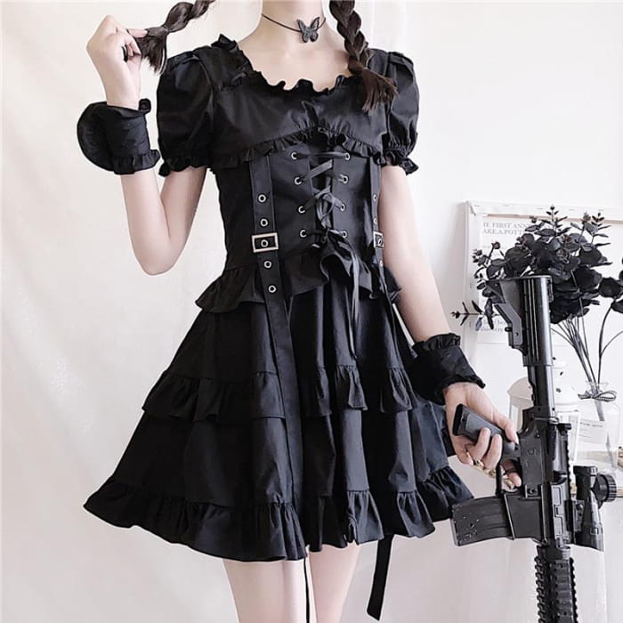 Y2K Ruffle Lace Up Buckle Gothic Sweet Dress